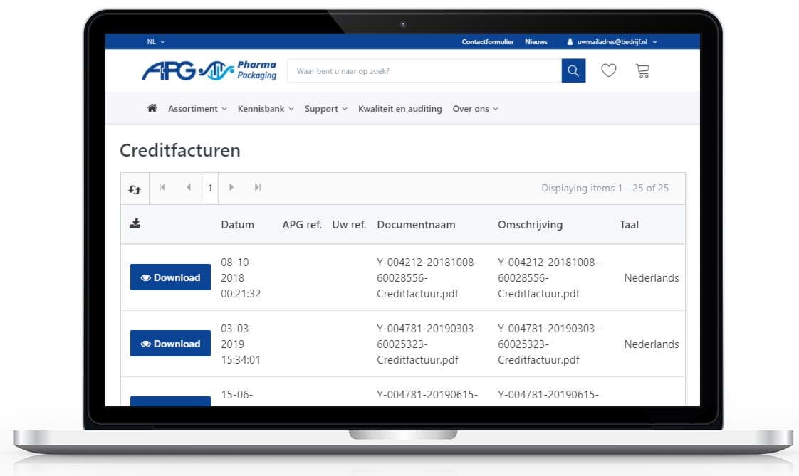 Creditfacturen kunnen op elk moment worden gedownload.