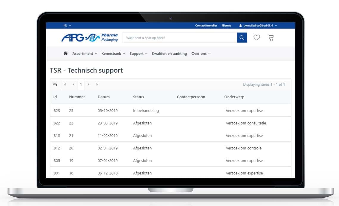 Uw verzoek tot technisch support (TSR: Technical Support Request) wordt geregistreerd in ons TSR managementsysteem. Onze afdeling Kwaliteit neemt uw melding binnen 1 werkdag in behandeling .Uw technisch support verzoek is vindbaar onder 'TSR - Technisch support' binnen de Kwaliteit & Docs module. De voordelen van het TSRM managementsysteem zijn: